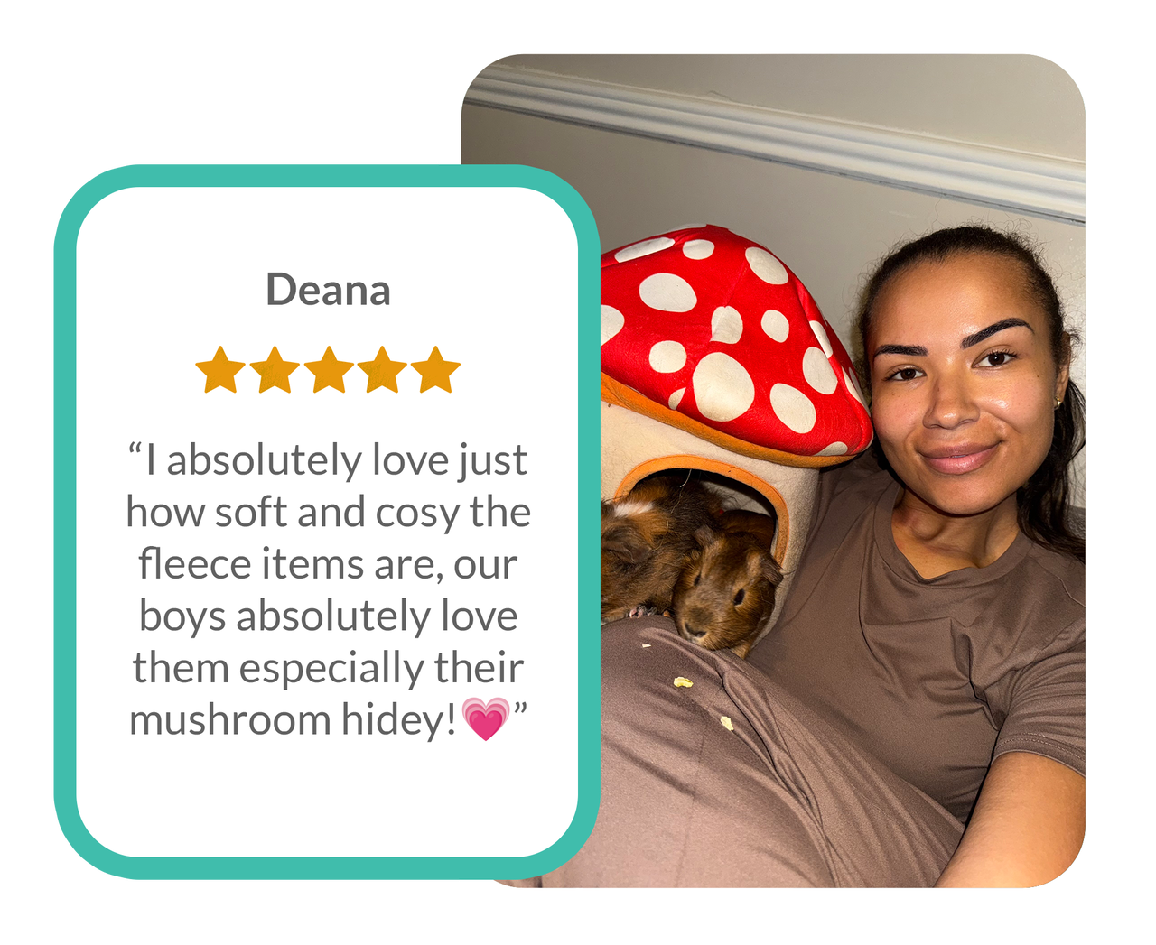My guinea pigs love this because it's more compact than most other hidey homes, so they feel more secure and snug. Excellently made with quality materials and amazing durability.